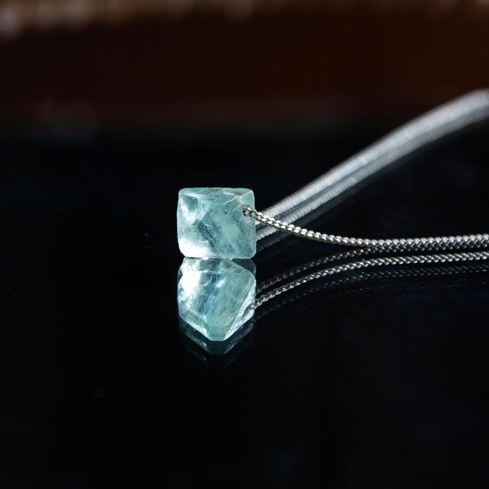 Fluorita Octaedra Verde - colar curto 40 cm (prata 925)