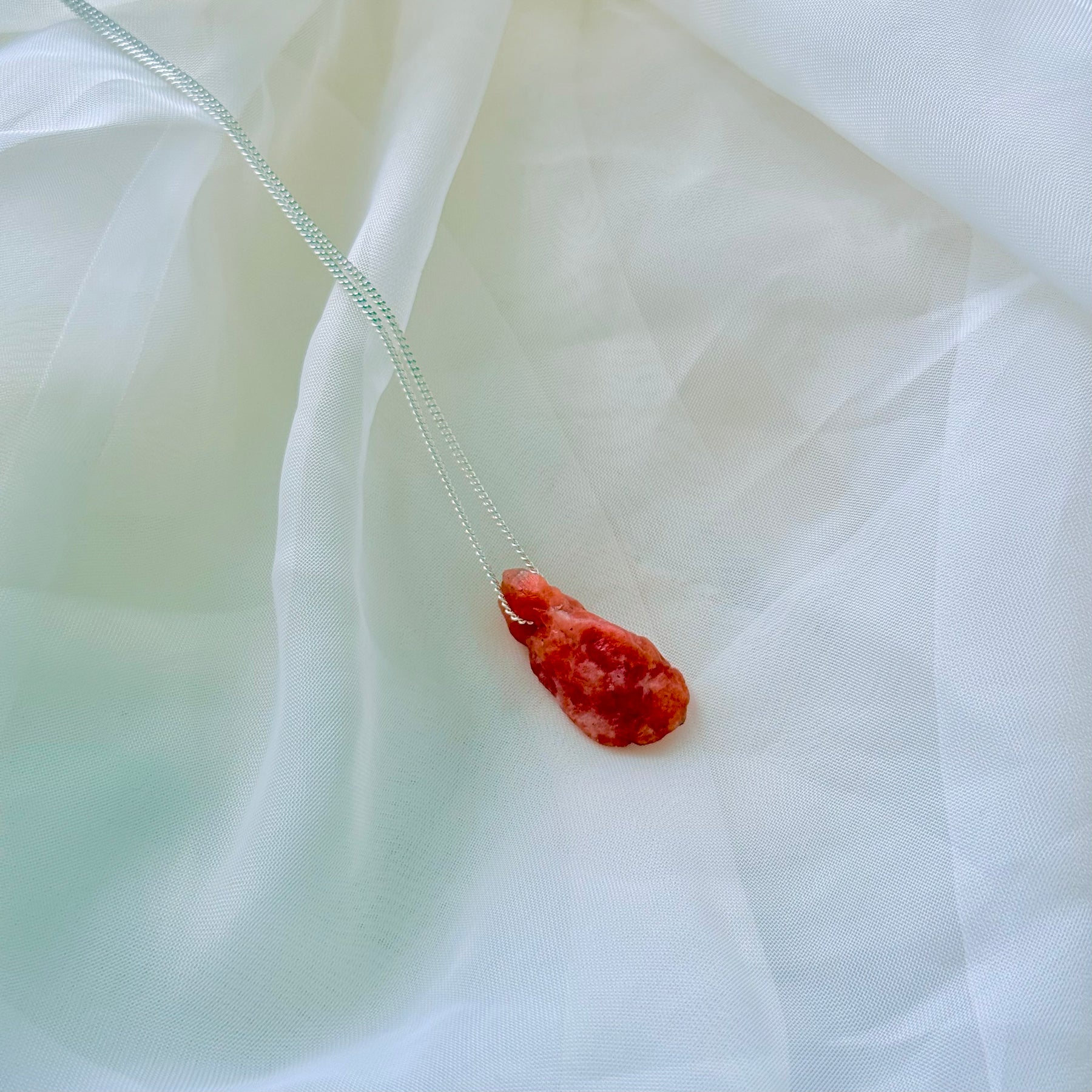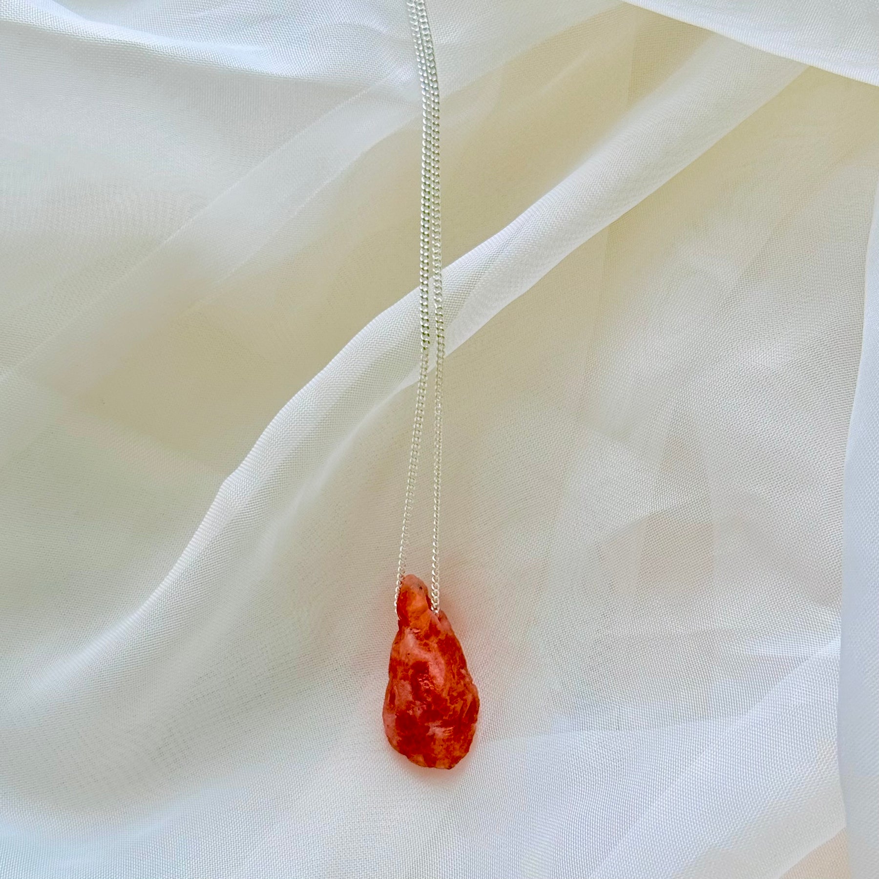 Calcita Laranja - colar longo 70 cm (prata 925)